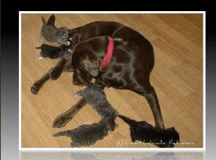 The story of Eromit Labradors could not even begin without this very important girl. Nestle was acquired after the abrupt and unexpected passing of my previous Lab Flash. I had developed an interest in breeding my own Labs and always had a soft spot for chocolates, and at the time, field-type chocolates were not very easy to find at least in our neck of the woods, so with the potential of breeding in mind, I sought out a puppy. My mom and I drove down to a small town near Estevan, Saskatchewan, to pick up the last chocolate female in a large litter from a breeder who had ‘just’ hunting dogs out of field trial and pointing lines- no fancy pedigree like the type that would attract me now. The little brown puppy rode on my lap all the way home and it took me two weeks to come up with a suitable name for her (she was this close to being named Rosebud!) Initially her main job was to learn every trick that Lassie performed in movies, and she did a little bit of hunting. She produced two nice litters by Renegade and a son, but I did not end up keeping any from either litter. By extreme good fortune, I was able to lease a grand-daughter of that first litter -Lee-for two breedings which gave us some of extremely nice pet, hunting and sport dogs including Verona, our first flyball champion Yoshi, and our first All Age field trial dog Shadow.