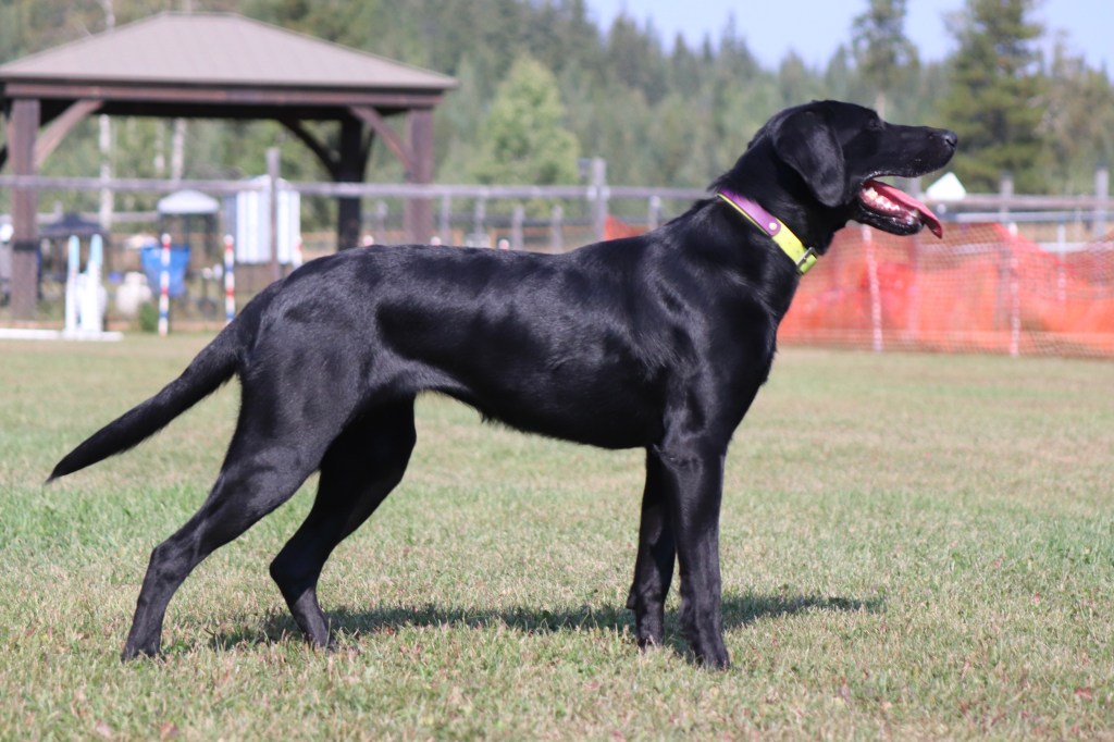 Birdie is a leggy, elegant, sweetheart of a dog. If a dog could be a supermodel, she would be the Labrador runway star for sure. Her structure and proportions are just what we are aiming for in a sound sporty dog. Birdie is built for speed and fittingly, one of her favorite things is to run like the wind!